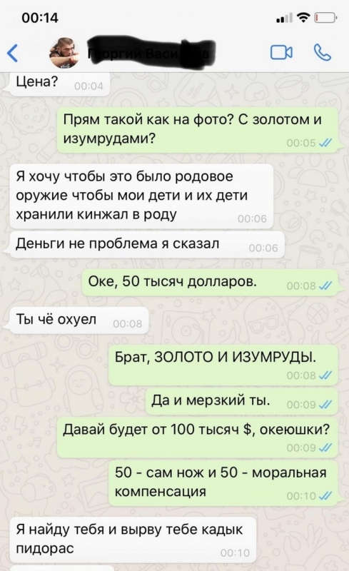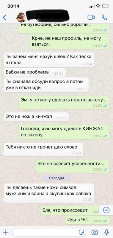 Мастер по изготовлению ножей попал на неадекватного клиента.