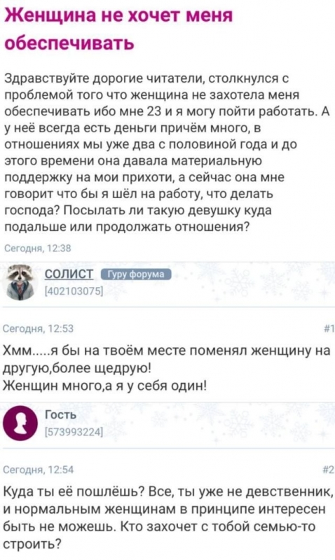 Девушки, а также некоторые мужчины, рассказывают свои истории на тематических женских форумах, надеясь найти совета у окружающих. Давайте узнаем, что же их волнует, в данном посте.